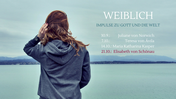 Elisabeth wurde 1129 geboren. Mit 12 Jahren kam sie in das Benediktinerinnen Kloster Schönau. Wie ihre Zeitgenossin Hildegard von Bingen, mit der sie in Kontakt stand, empfing sie Visionen und Ekstasen. Elisabeth war eine geschätzte Gesprächspartnerin, deren Rat, gerade in geistlichen Dingen, oft eingeholt wurde. Von Krankheit geprägt verstarb Elisabeth um 1165. „Was Elisabeth ausmacht, ist das kompromisslose Ringen um die Nähe Gottes. In diesem Ringen wurde ihr eine visionäre Schau zu eigen, die auch heutige Menschen beeindrucken und uns Mut machen kann.“ (Franz Kamphaus)
