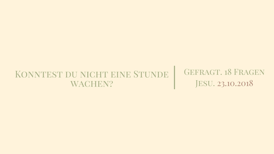 Weggedämmert. Als es ganz ernst wird, übermannt die Jünger die Müdigkeit, sie schlafen ein. Sie sind nicht da. Konntest du nicht eine Stunde wachen?Wachen mit Jesus – und in der Zeit. Manchmal kann auch das Gebet einschlafen, wenn es nur noch in die Innerlichkeit geht und die Zeit, die konkrete Welt ausblendet. Unser Beten, unser Betrachten der Schrift wird wach, wenn es die Welt hineinnimmt. Mit Jesus wachen, das bedeutet, mit der Welt und für sie zu wachen. Wie ist das mit Müdigkeit und Wachheit im eigenen geistlichen Leben?