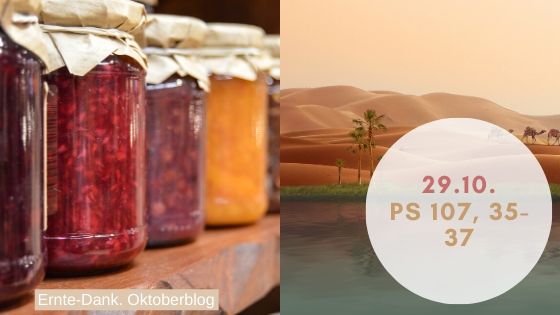 Er macht Wüste zum Wasserteich, verdorrtes Land zu Oasen. Dort ließ er Hungernde wohnen, die eine bewohnte Stadt errichteten, die Felder bestellten, Weinberge pflanzten und reiche Ernte erzielten.