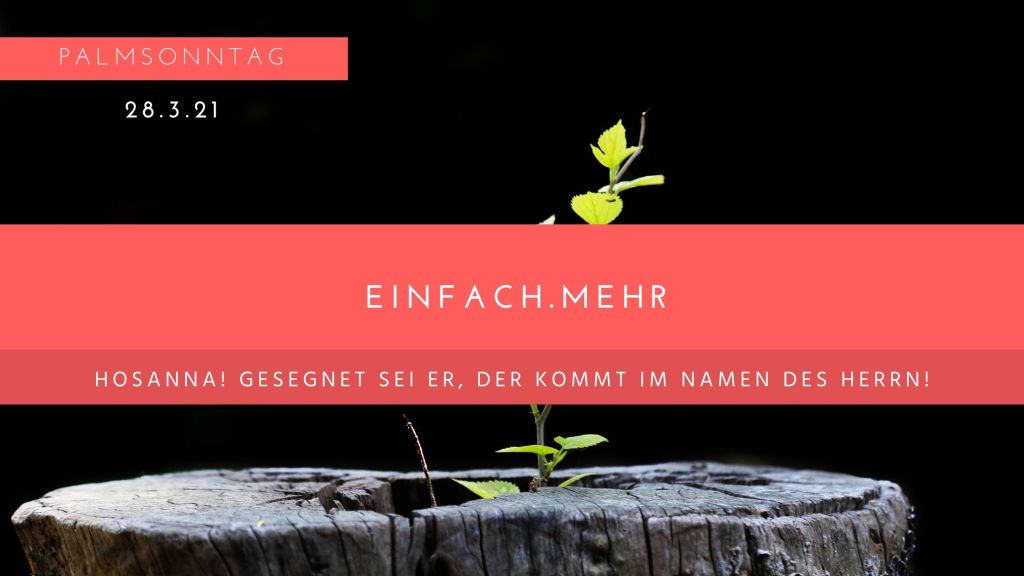 Das Leben teilen, Angst und Verrat, der Tod und ein Leben über alle Vorstellung hinaus, Palmsonntag eröffnet die heilige Woche und führt in das Geschehen von Gründonnerstag, Karfreitag, der Grabesruhe und Ostern. Hosanna! lautet der Ruf. Gewiss, da spricht die unbeständige Begeisterung, die nur allzu schnell umschlagen wird. Zugleich kann man in diesem Ruf einen Hinweis sehen auf das, was folgen wird: Dieser Jesus ist gesegnet und ein Gottesbote. Der Segen wird sich völlig verbergen und er wird sich ganz neu zeigen. Manchmal geschieht das auch mit dem Glauben an Jesus. Der Glaube kann sich sehr verfinstern und er kann sich ganz neu zeigen. Das ist die Erfahrung der Jüngerinnen und Jünger, vom Anfang und bis heute.