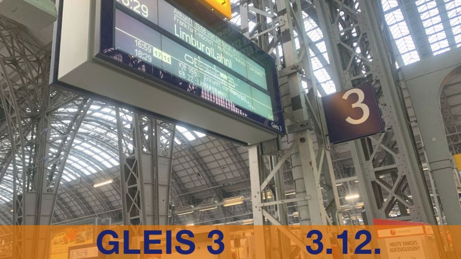 Hinter den Gleisen verläuft im rechten Winkel der „Querbahnsteig“, der alle 24 Gleise verbindet. Etwa in Höhe von Gleis 3, leicht versteckt durch die großen Buden für Reiseproviant, ist eine elektrische Eisenbahn aufgebaut, wie es sie auf den großen Bahnhöfen schon – so ist die Erinnerung -immer gab. Für eine Münze kann man einen Zug kreisen lassen. Als ich die Fotos für den Blog aufnehme, steht gerade ein junges Pärchen am Regler und freut sich an der Eisenbahn.