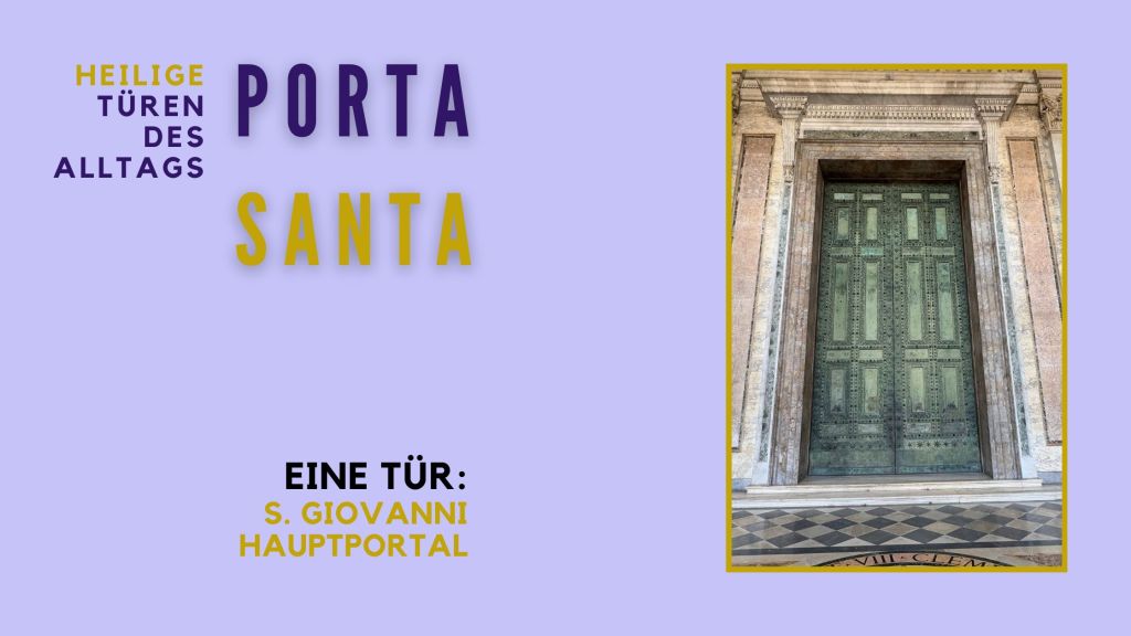 Das Hauptportal von San Giovanni in Laterano. Das Hauptportal der Laterankirche in Rom macht mächtig Eindruck: Zwei große Bronzeflügel mit Kassetten und einer Rahmung mit vielen Sternen. Die Rückseite ist eher schlicht gehalten. Die Tür hat Patina angesetzt. Sie sieht alt aus und ist es, sie ist wirklich antik. Die beiden Flügel stammen aus der Kurie, dem Sitz des römischen Senats auf dem Forum. Dort wurden sie ausgebaut, in einen neuen Rahmen eingepasst und in San Giovanni eingebaut.