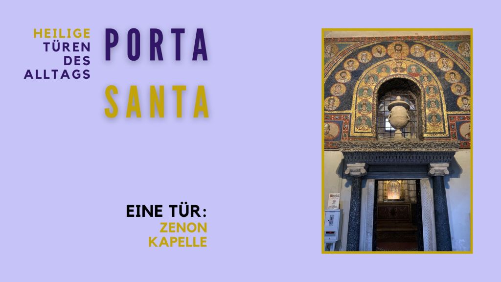 Die Paradiespforte der Zenon Kapelle. Die Zenonkapelle befindet sich in der Kirche Santa Prassede in Rom. Von innen ist sie über und über mit frühchristlichen Mosaiken geschmückt. Weil sie so prächtig strahlt, wird die Kapelle auch Paradiesgärtlein genannt und der Eingang Paradiespforte.