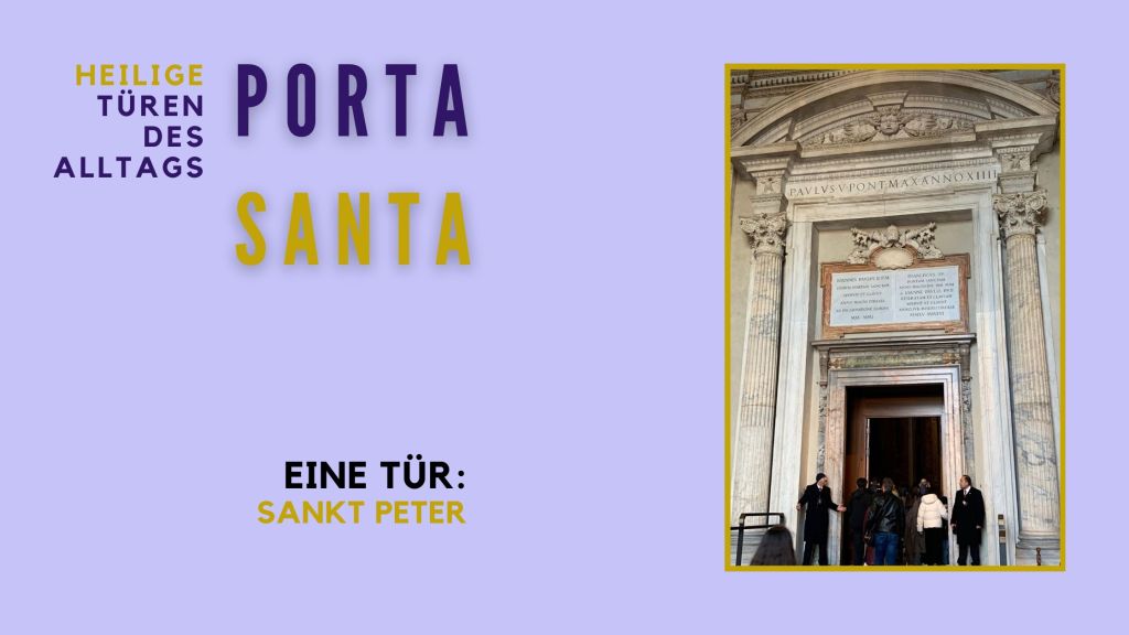 Die Porta Santa von St. Peter: Es ist schon ein Weg zurückzulegen, bis man zur Heiligen Pforte von Sankt Peter kommt, im heiligen Jahr noch einmal mehr. Von der Engelsburg bis zum Petersplatz verläuft der Prozessionsweg, die mächtige Peterskirche immer im Blick. So kommt man auf den weiten Petersplatz. Der Blick geht hoch zur Fassade, die wie ein Gebirge aus Säulen, Wänden, Durchgängen und Verzierungen emporragt. Was man sieht, ist nicht die Kirche selbst, sondern nur der Vorbau. Die Heilige Pforte findet man erst, wenn man in die Vorhalle geht. Eine kleine Tür ist die Porta Santa, die einen schließlich ins Innere führt.