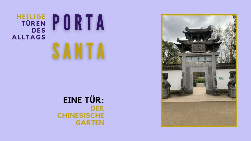 Das Tor zum chinesischen Garten: Im Bethmannpark in Frankfurt, der so groß wie ein Häuserblock ist, gibt es einen abgeteilten Bereich. Hinter einer weißen Mauer, in der hier und da Fensterdurchbrüche sind, liegt der chinesische Garten. Schon von außen erkennt man chinesische Ornamente und der Garten selbst ist nach chinesischem Vorbild angelegt, mit Bambus, einem Gewässer, einem Teehaus und kleinen Pfaden. Eine Oase der Ruhe, die hilft, herunterzufahren und bei sich anzukommen.