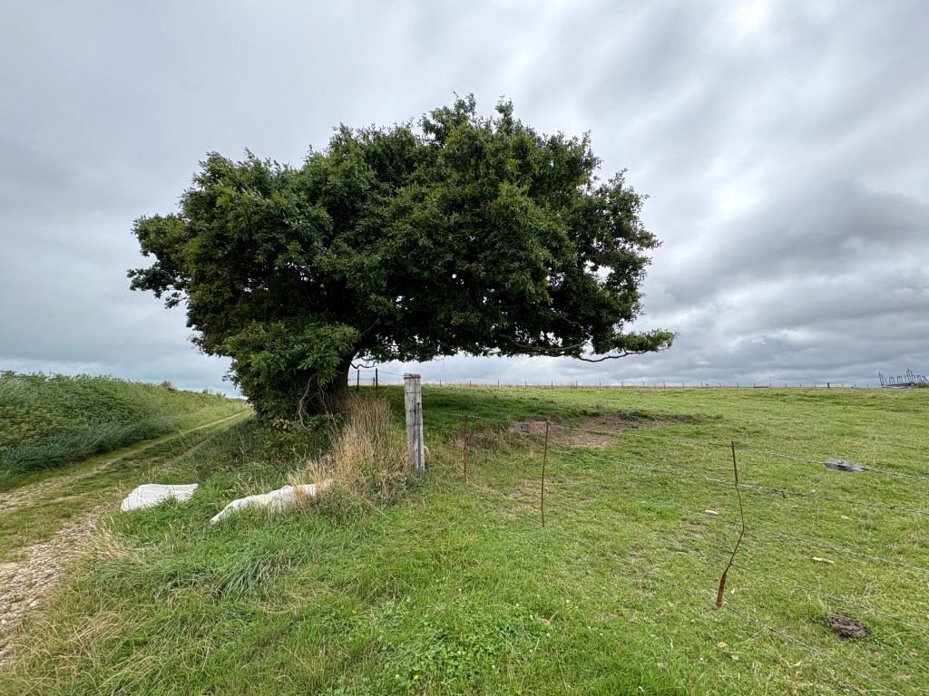 Ich mache eine Wanderung an der Alabasterküste. Bis zu 100 Meter fallen die Klippen steil ab. Es ist eine raue Landschaft, die vom Meer und vom Wind geformt wurde. Ich komme an einem eindrucksvollen Baum vorbei, er hat gleichsam eine Sturmfrisur: Zum Meer hin sind die Äste kurz, auf der dem Wind abgewandten Seite ist er in die Länge gewachsen. Wie ein großer Wegweiser für Luv und Lee steht er auf den Weiden.